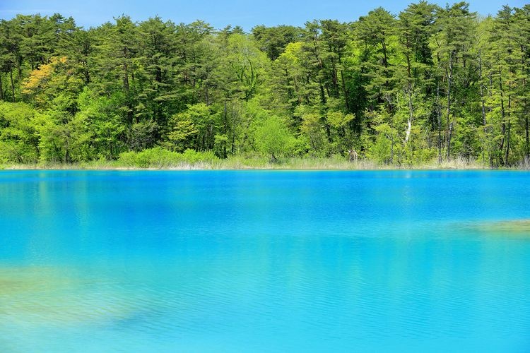The Goshikinuma Pond Group is a collection of over 30 small lakes and ponds located in Kitashiobara Village, Yama District, Fukushima Prefecture. They were formed on July 15, 1888 (Meiji 21), after the eruption of Mount Bandai caused a massive collapse of the mountain, and resulting debris flows dammed a river. Each pond displays a variety of colors—green, red, blue, and more—due to differences in water depth, quality, and the presence of phytoplankton, leading to the name "Goshikinuma" (Five-Colored Ponds).